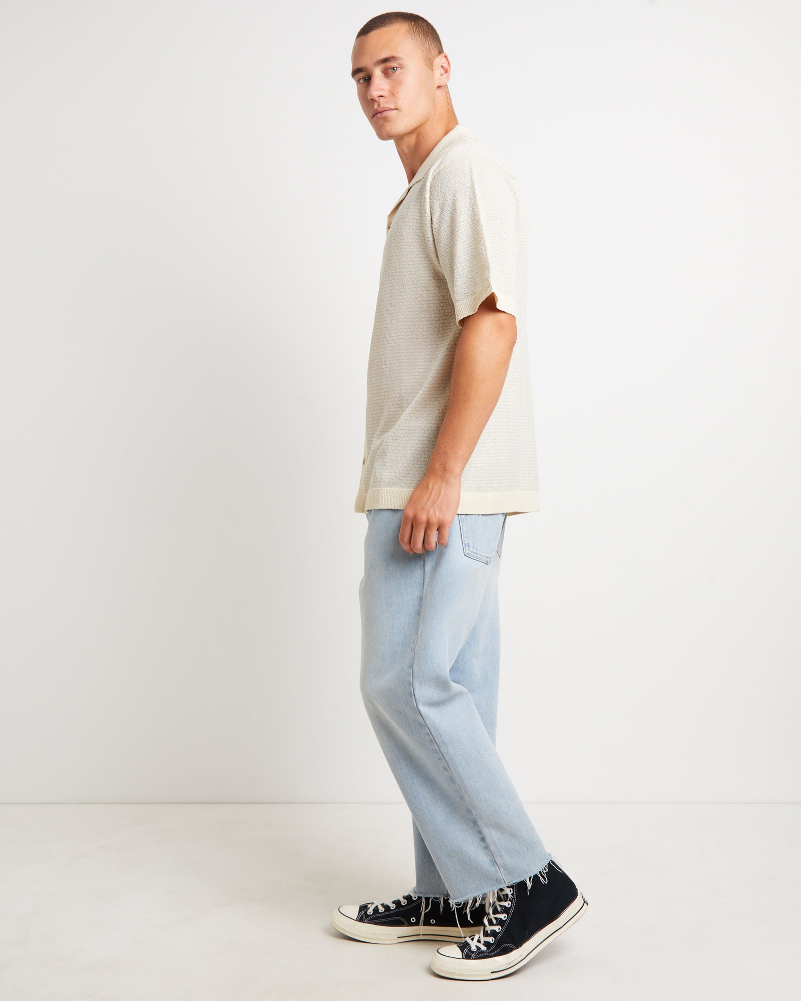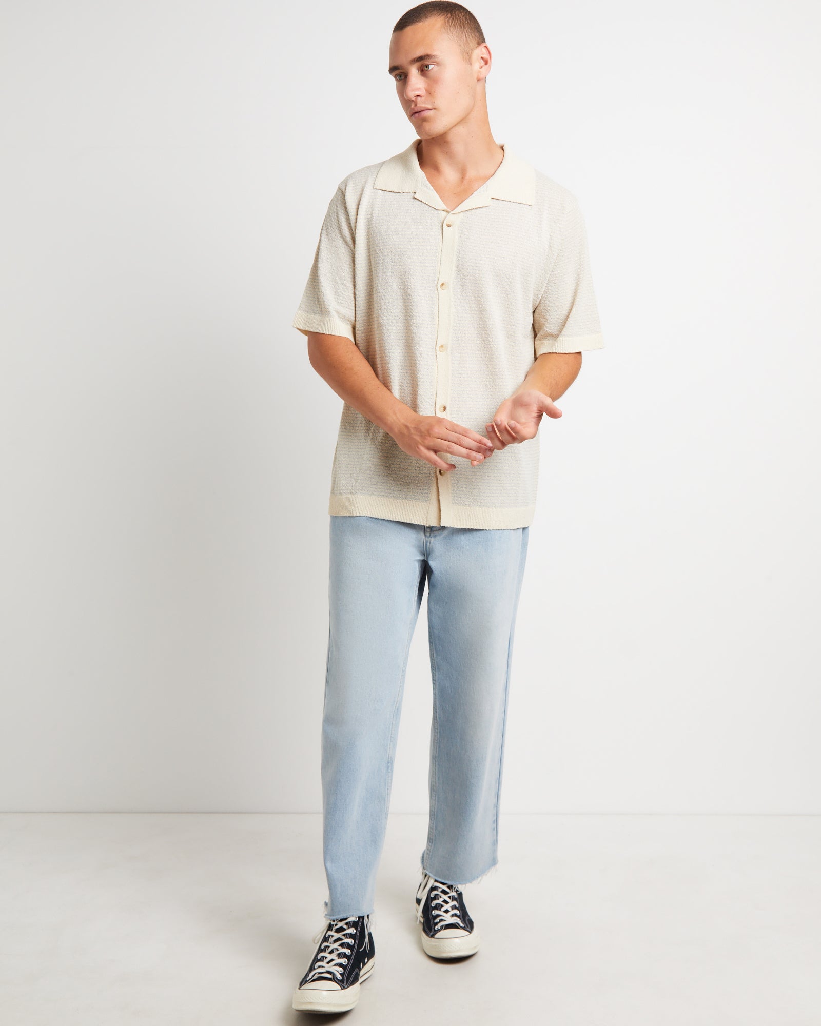 Boucle Bowler Short Sleeve Shirt in Natural