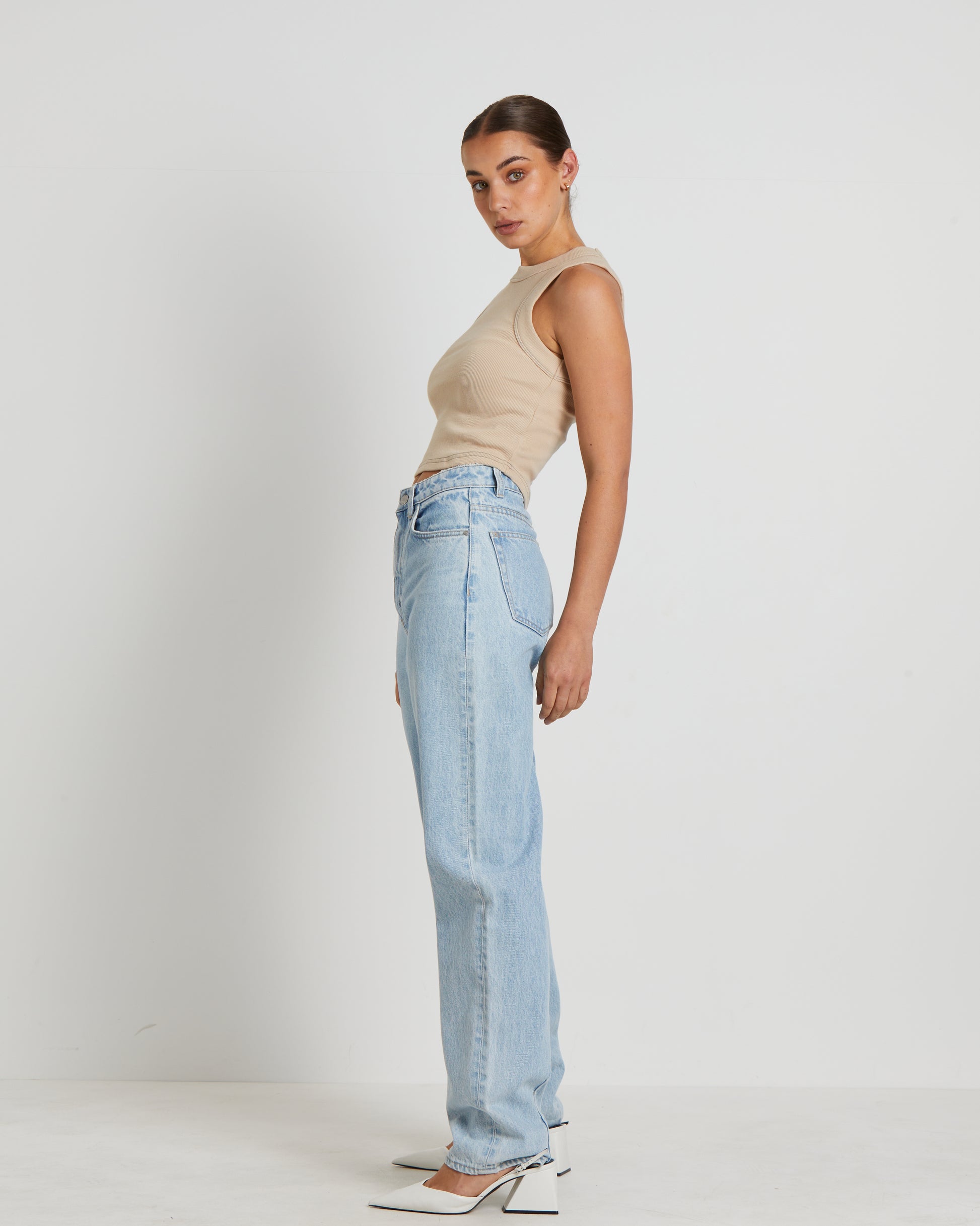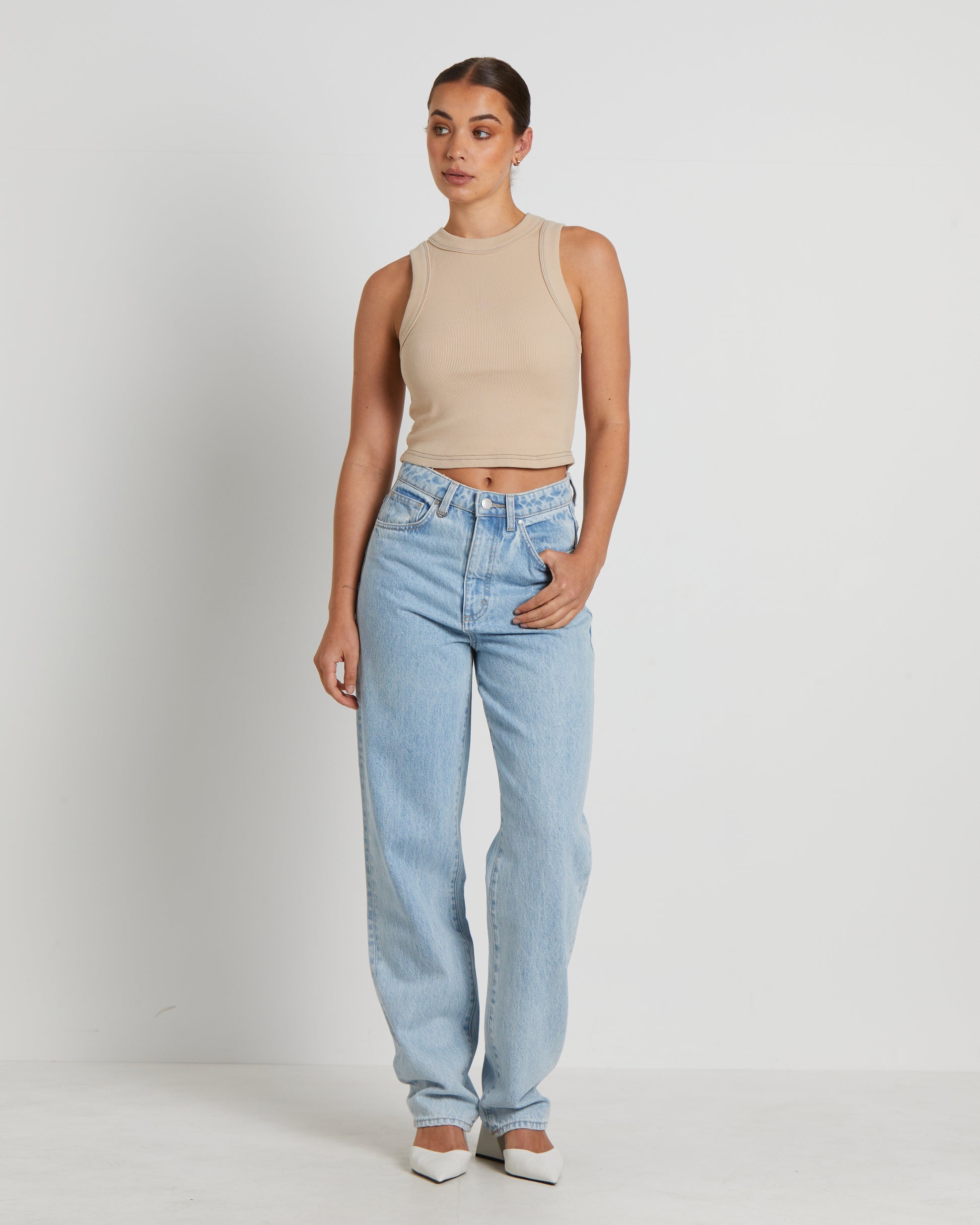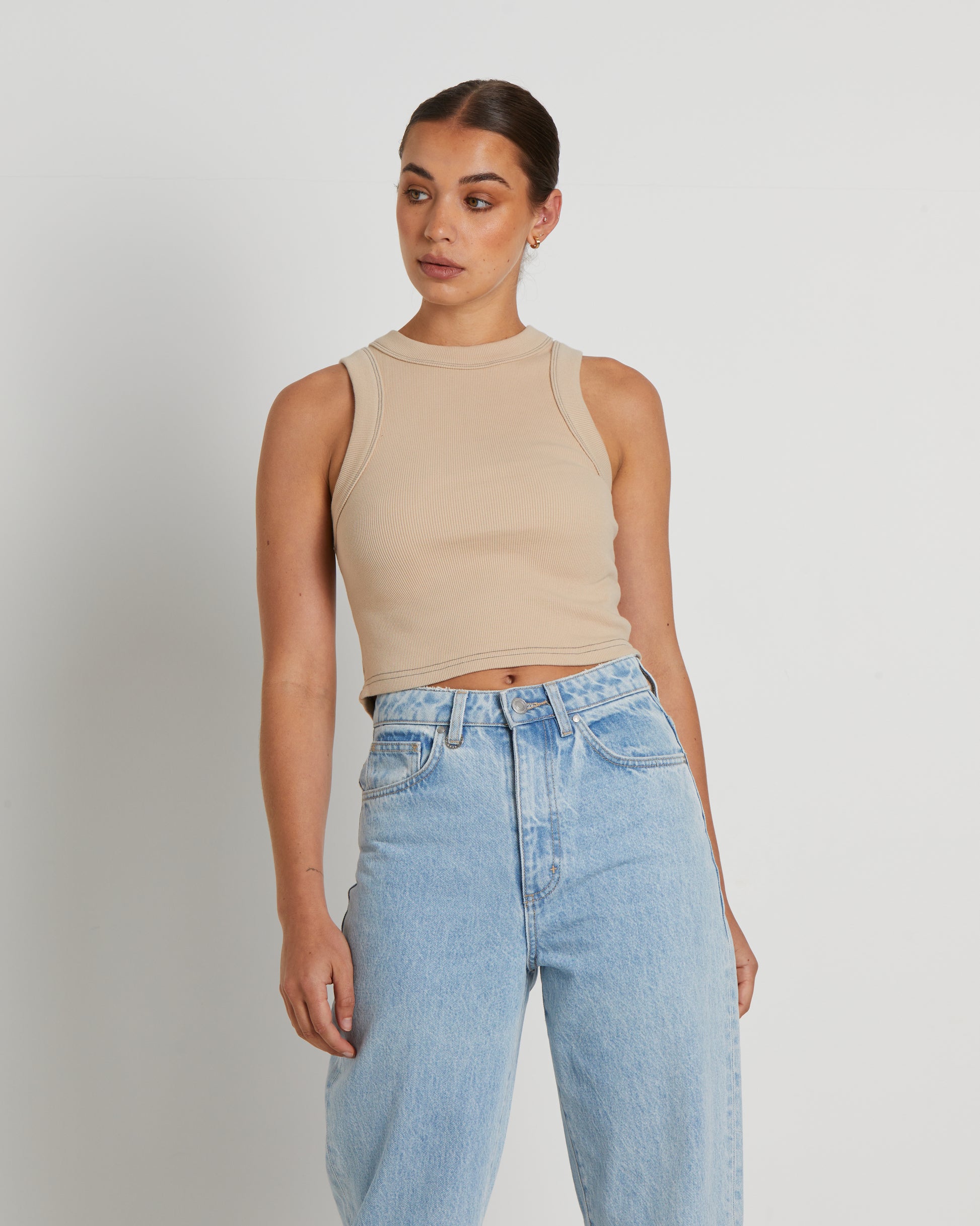 Jonesy Recut Rib Singlet in Bleached Sand