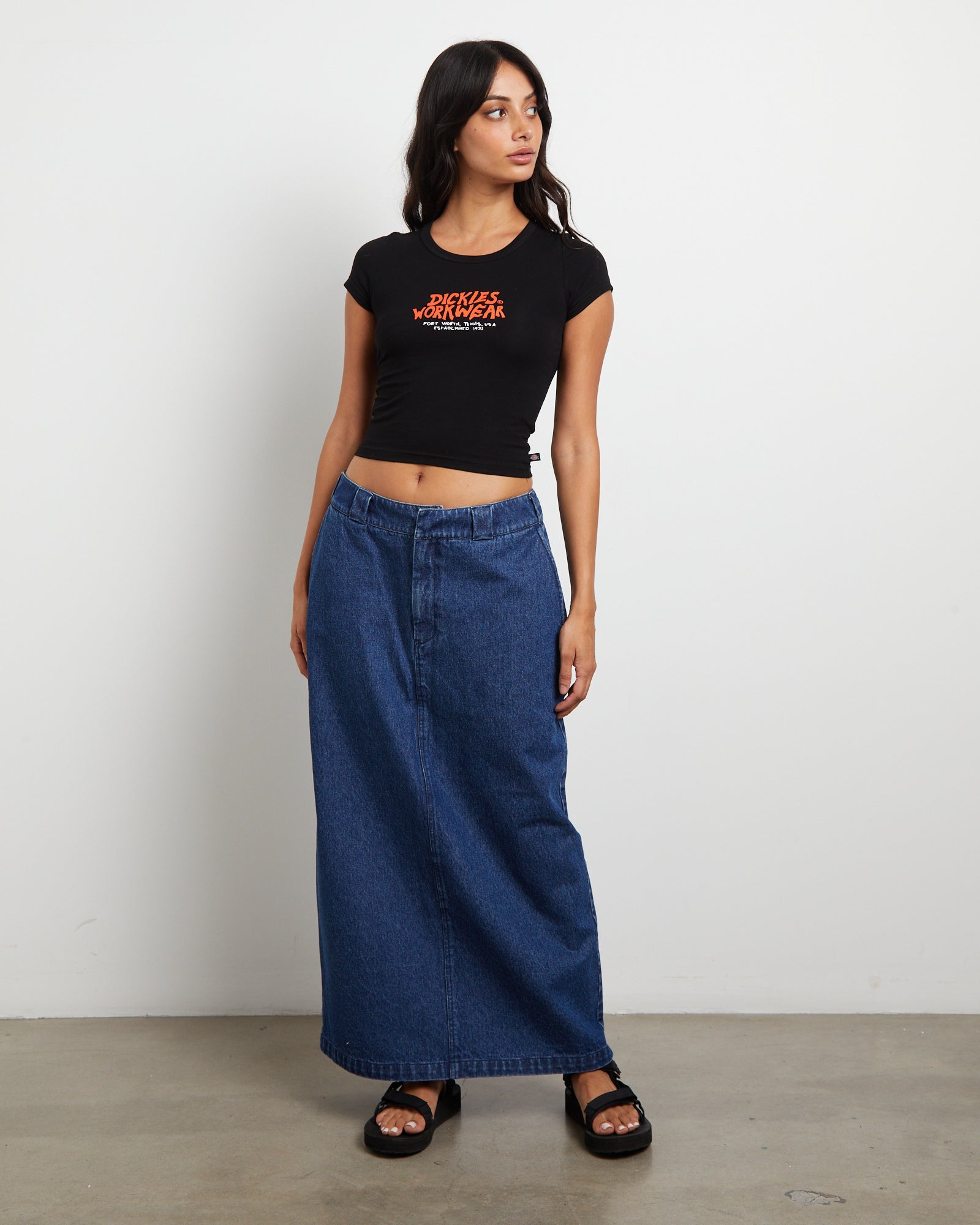 874 Denim Maxi Skirt in Stone Washed Indigo