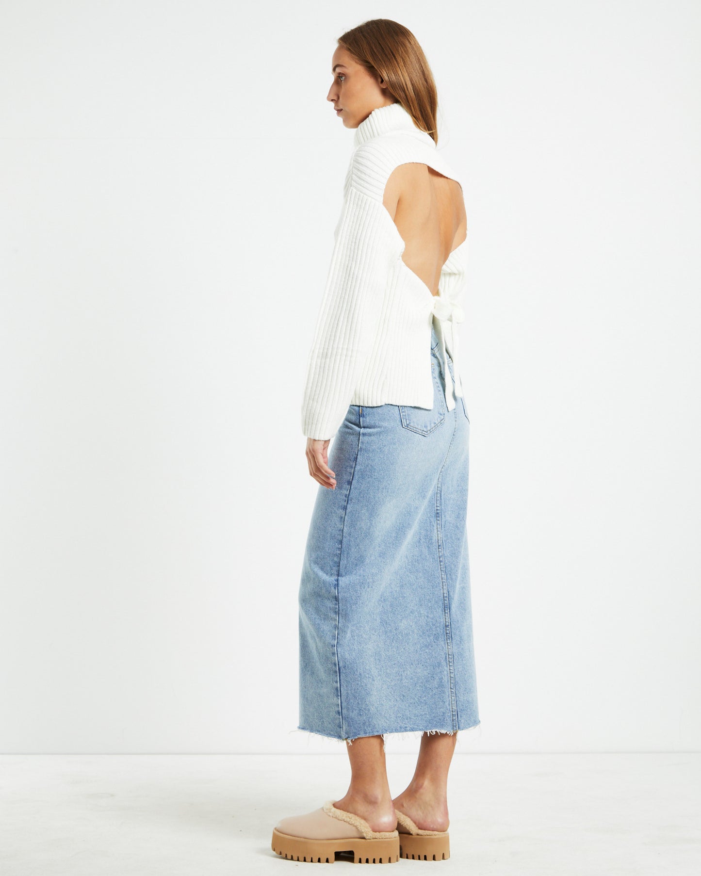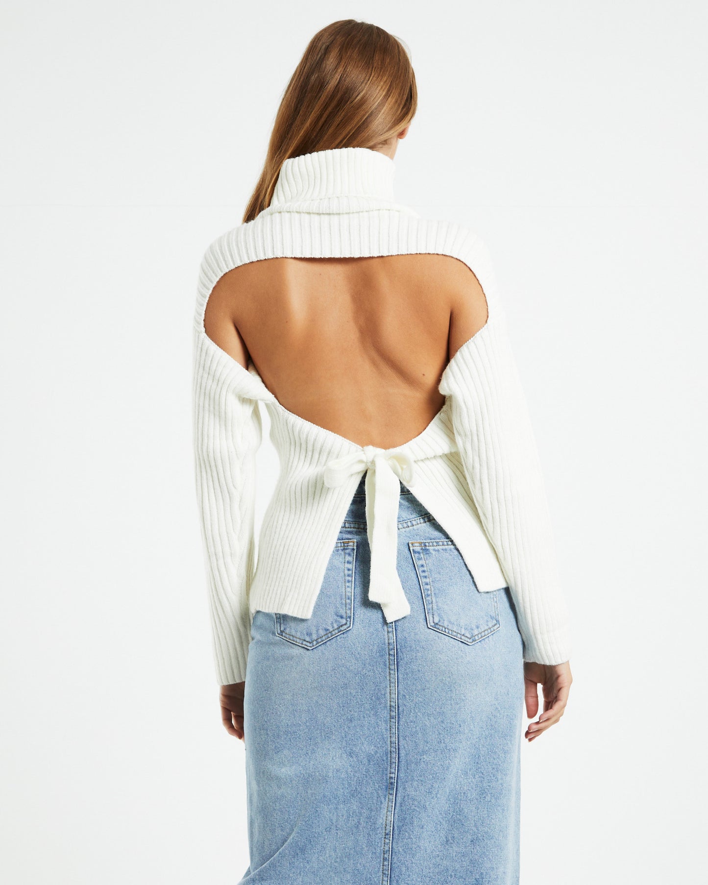Amina Tie Back Boxy Knit Jumper White