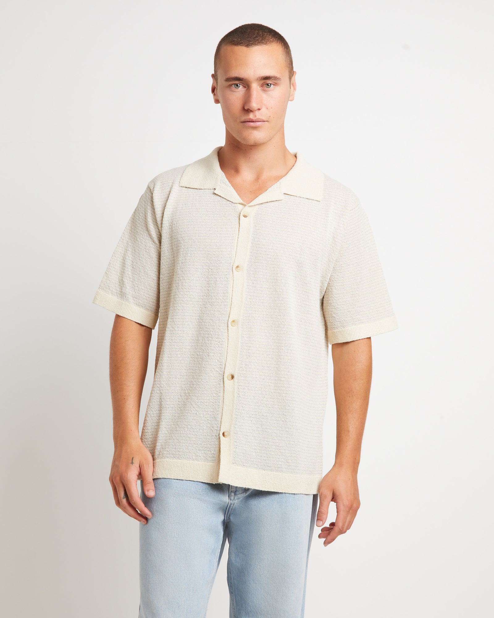 Boucle Bowler Short Sleeve Shirt in Natural