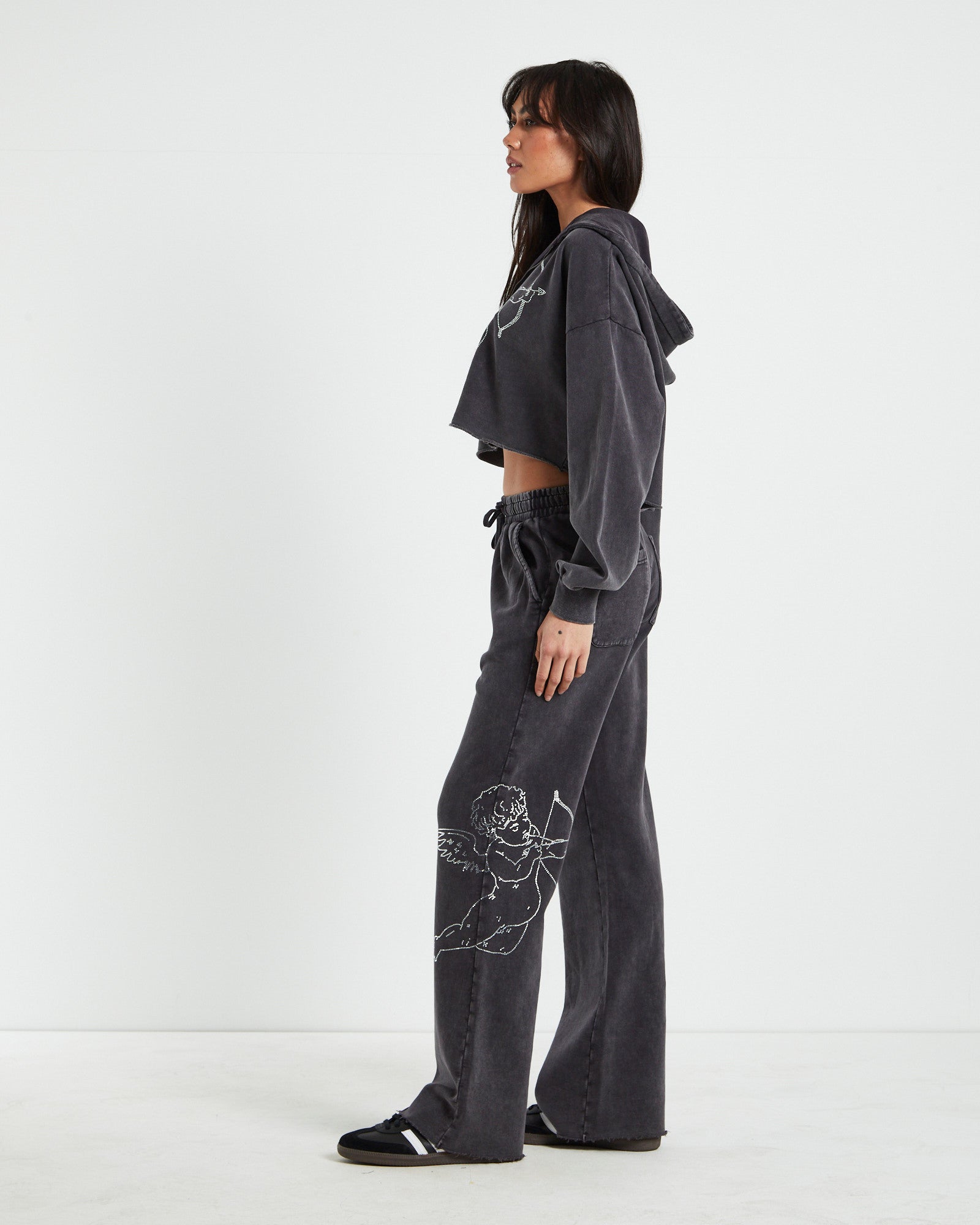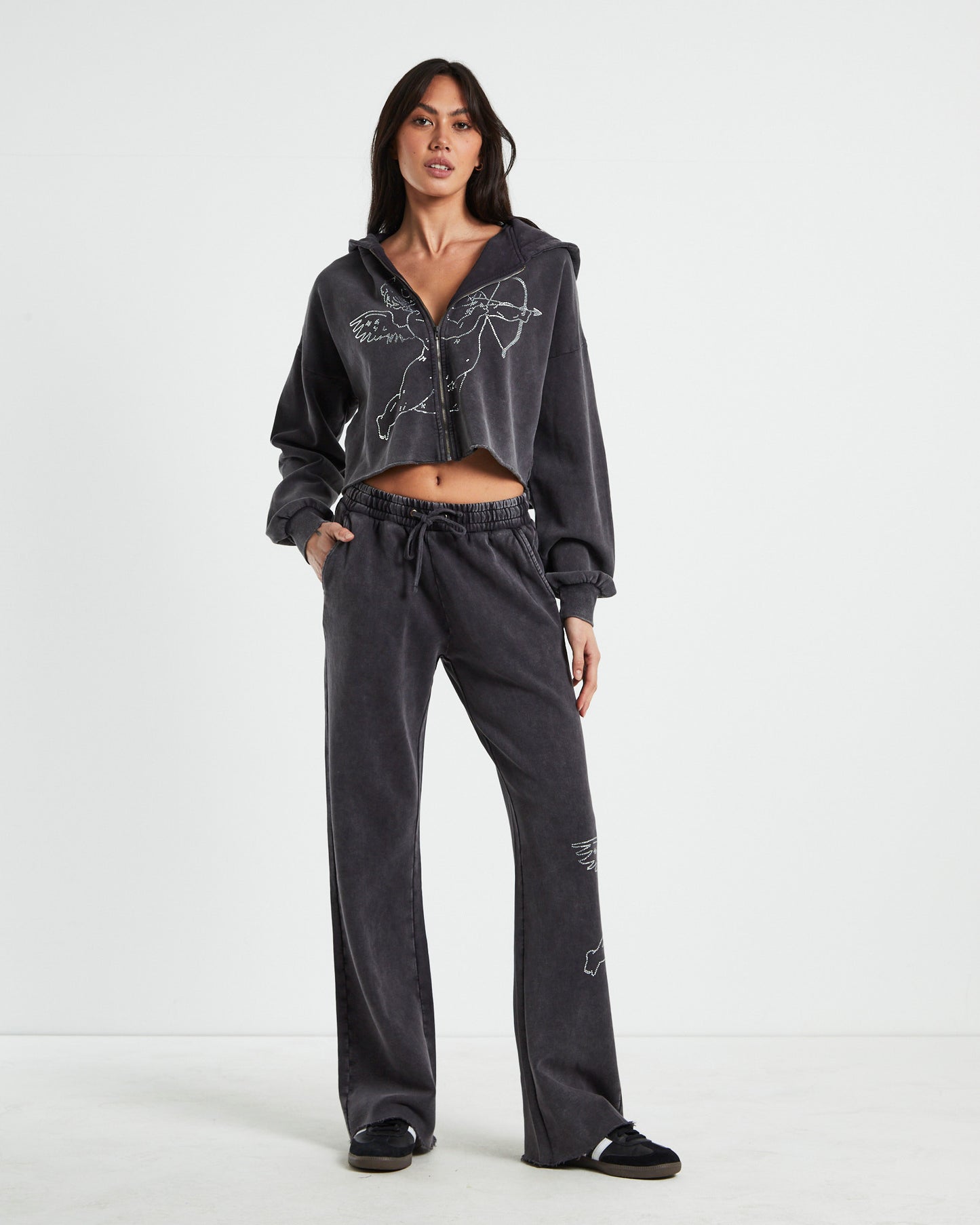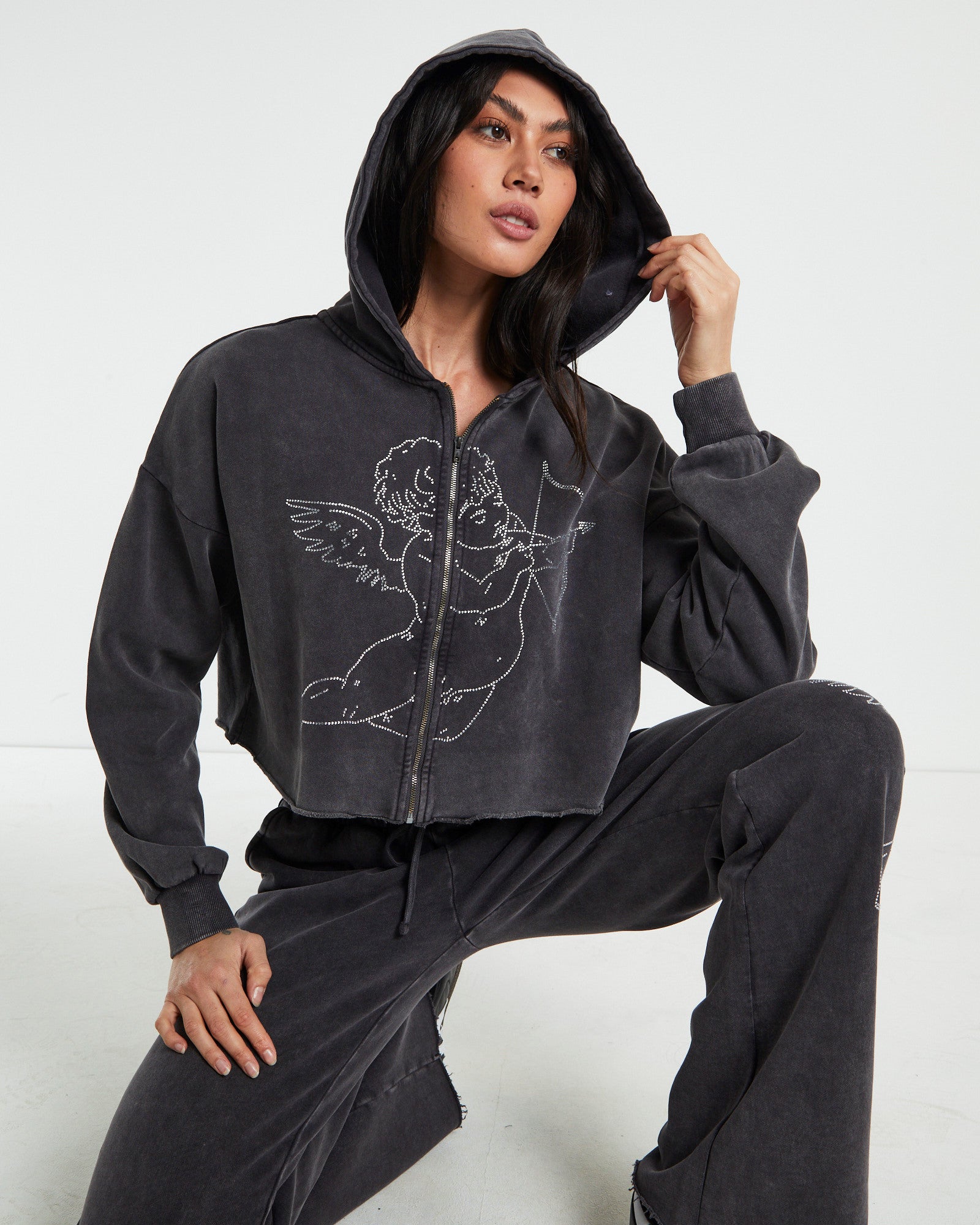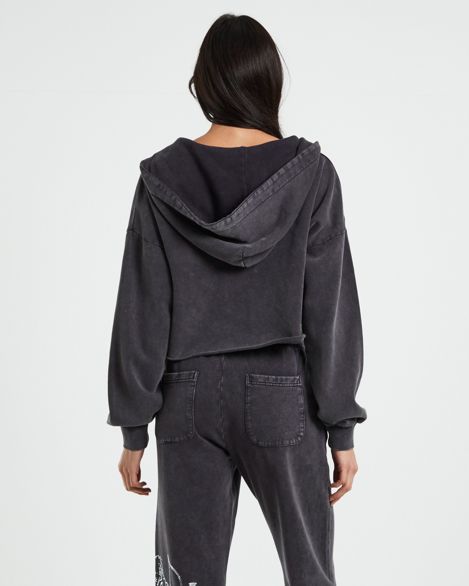 Cherub Acid Wash Zip Front Hoodie Charcoal