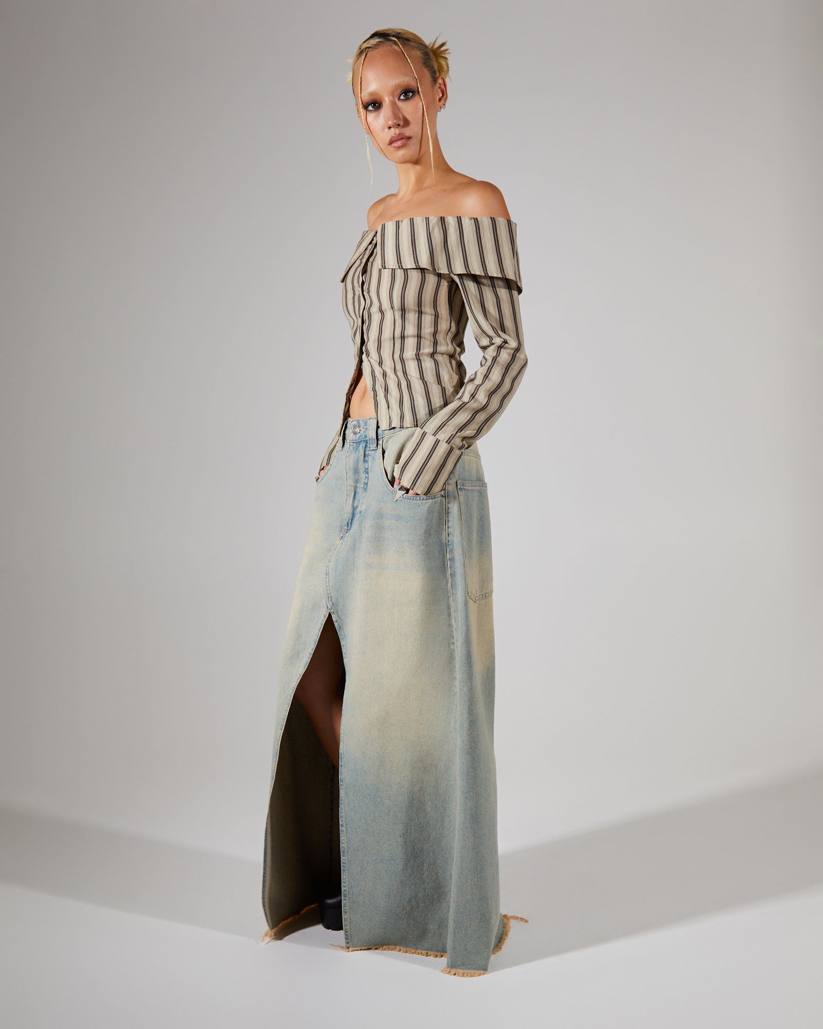 Colossus Maxi Skirt Light Wash Denim