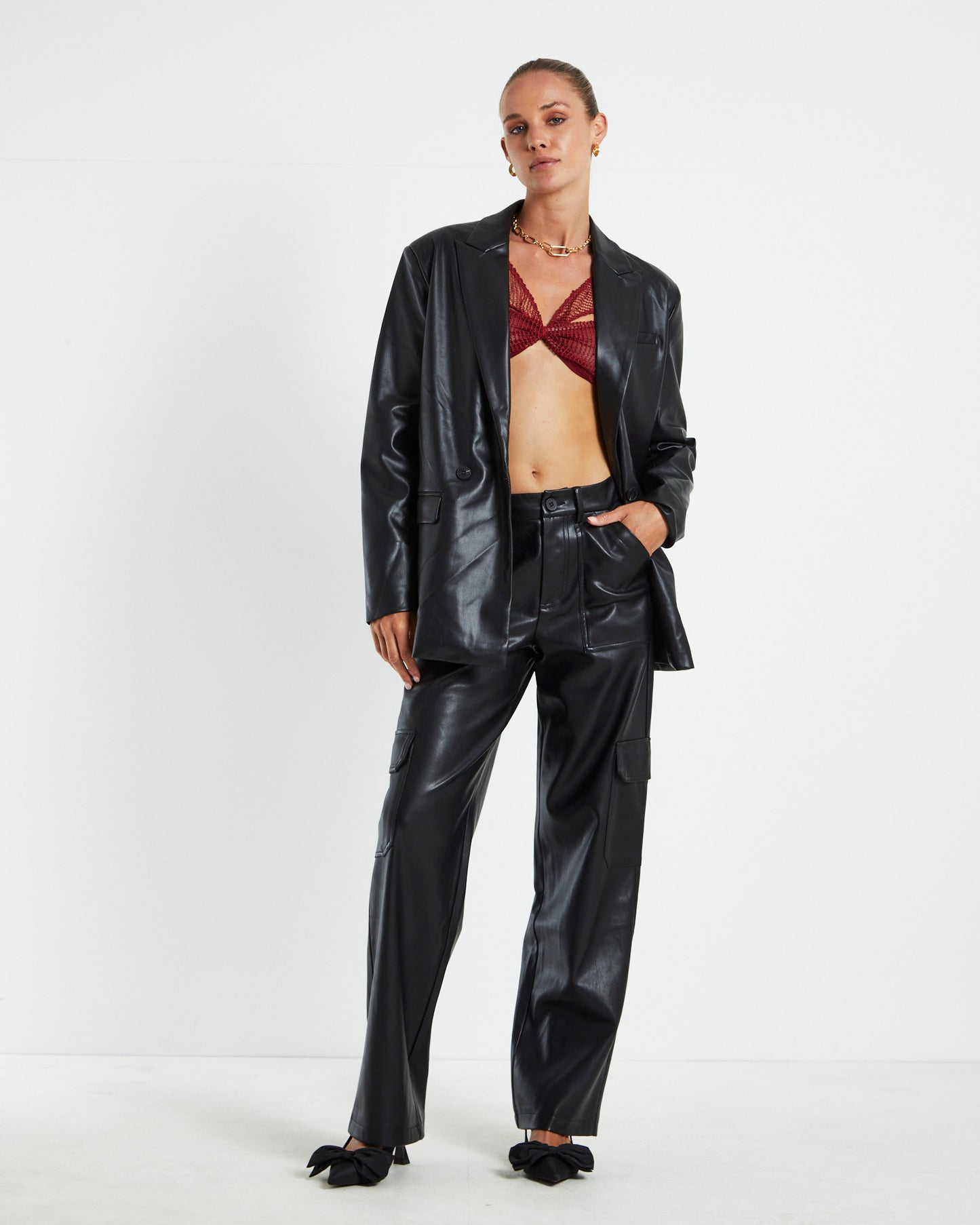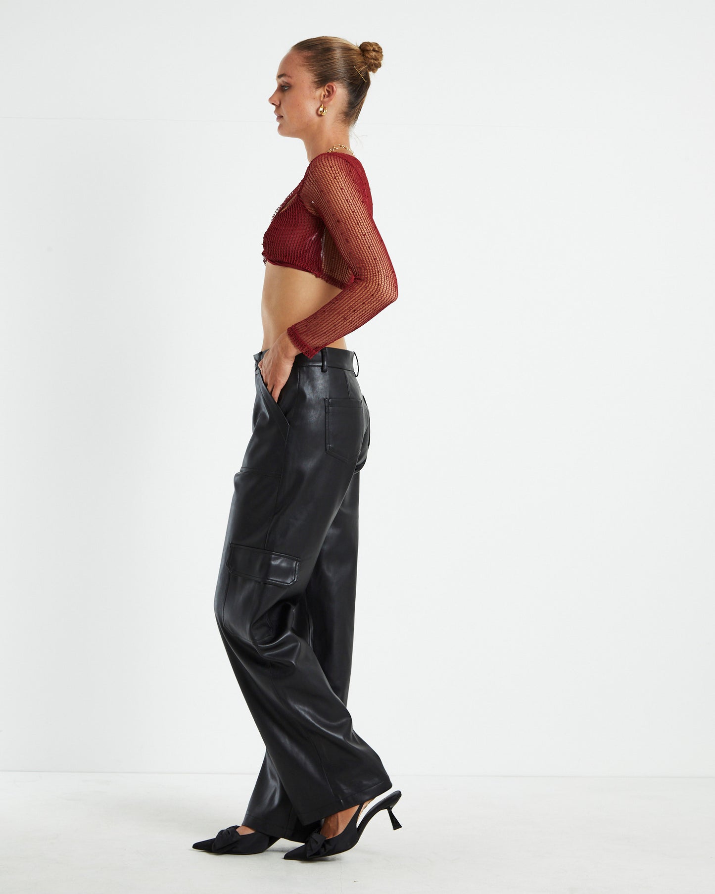 Emery Shimmer Mesh Long Sleeve Top Garnet Red
