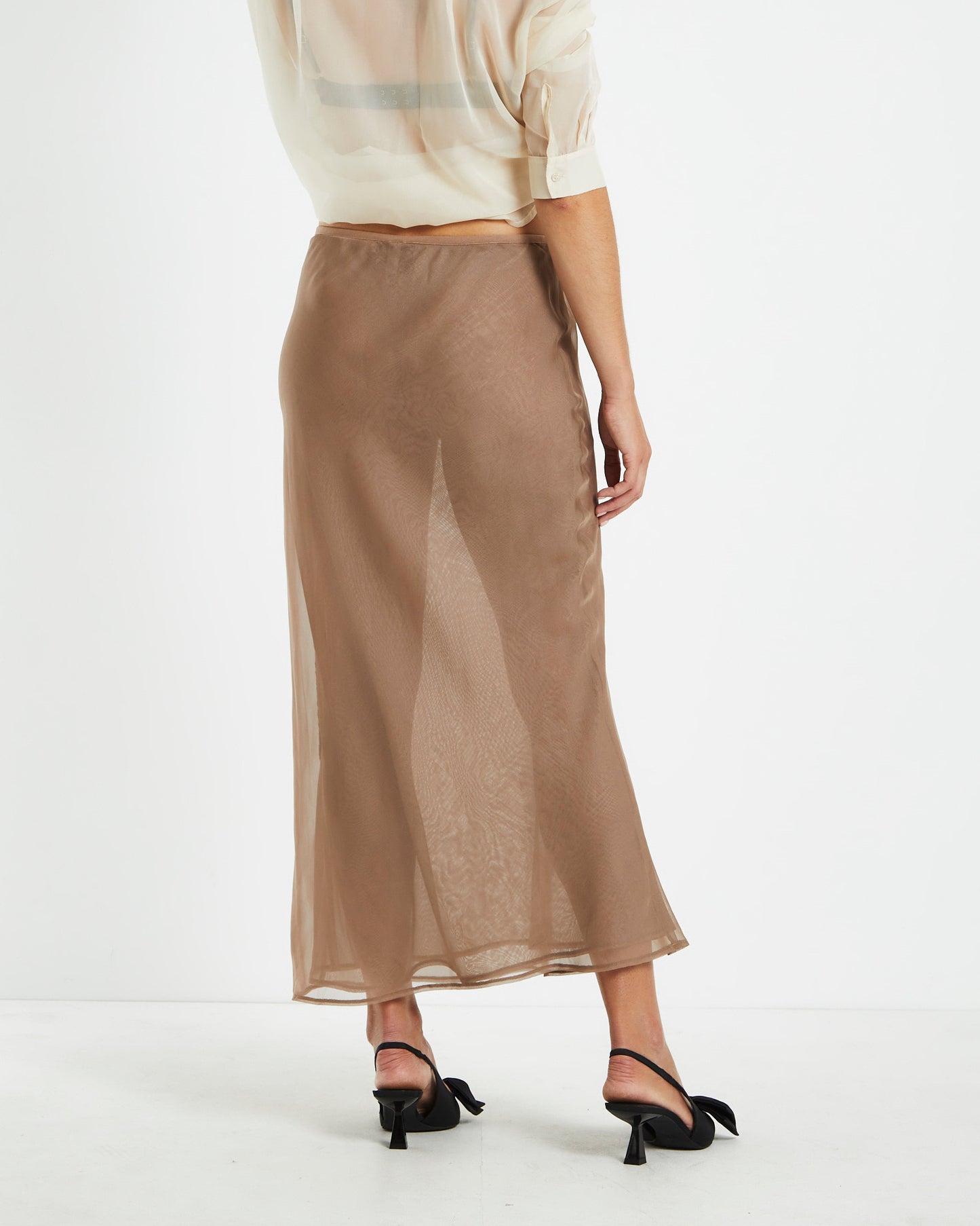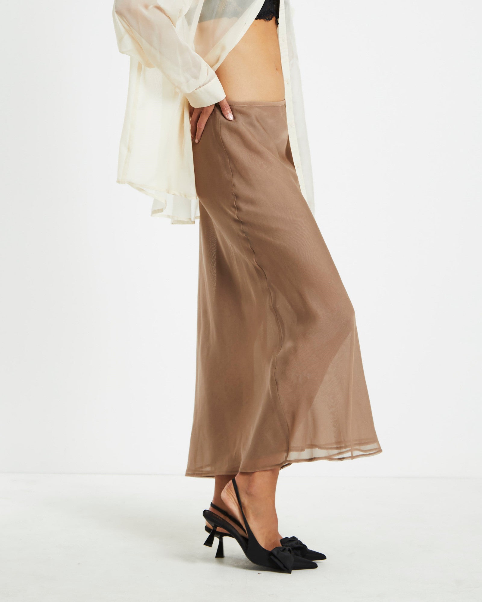 Faye Sheer Midi Skirt Brown