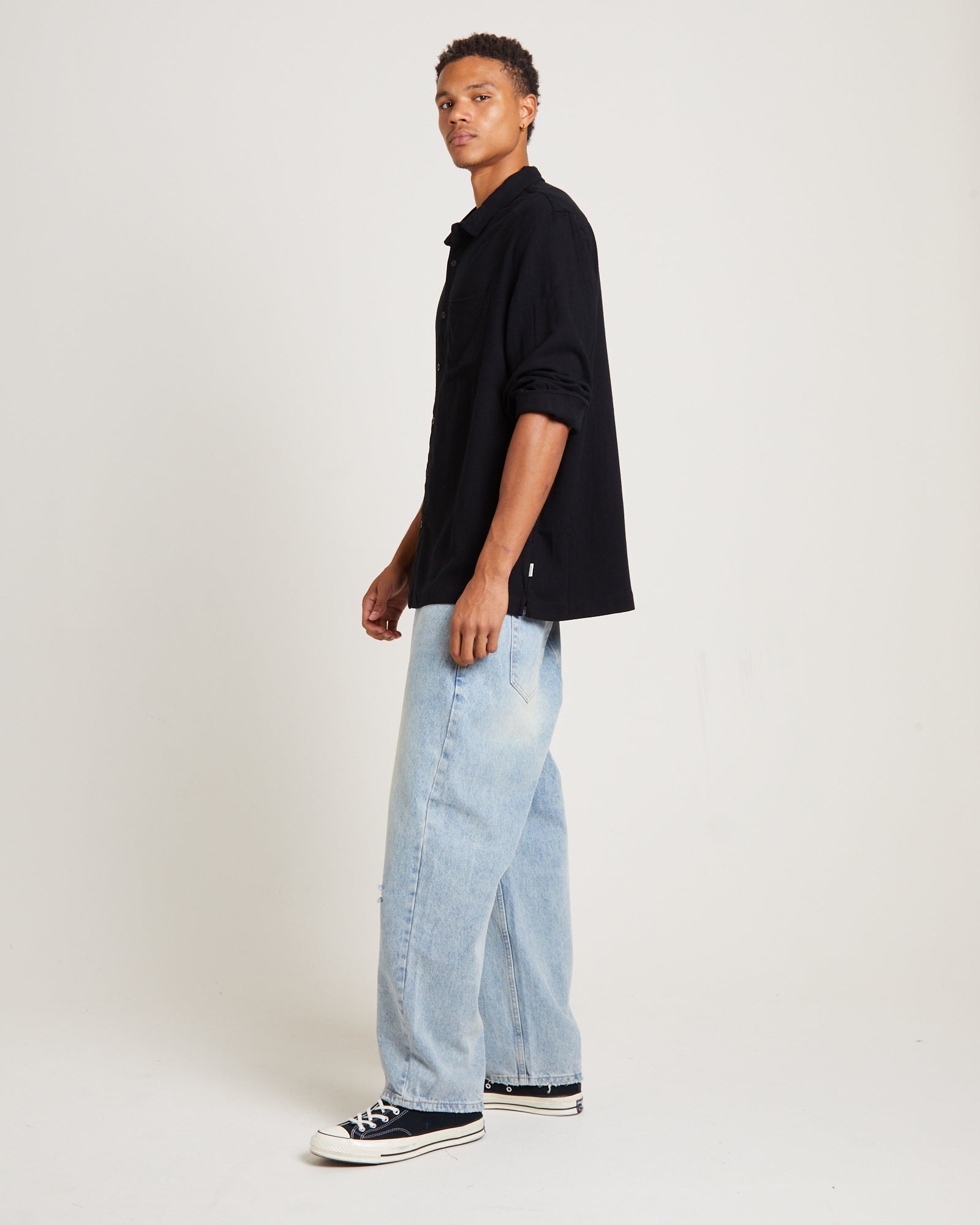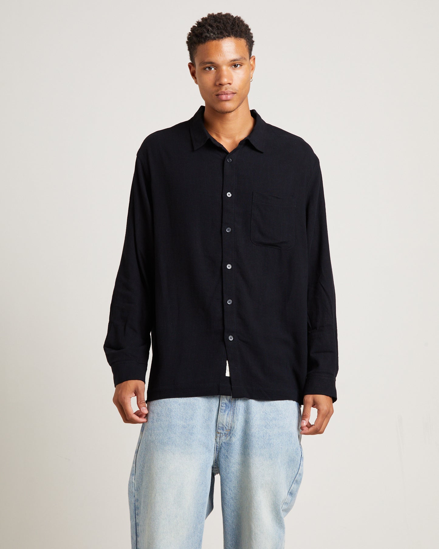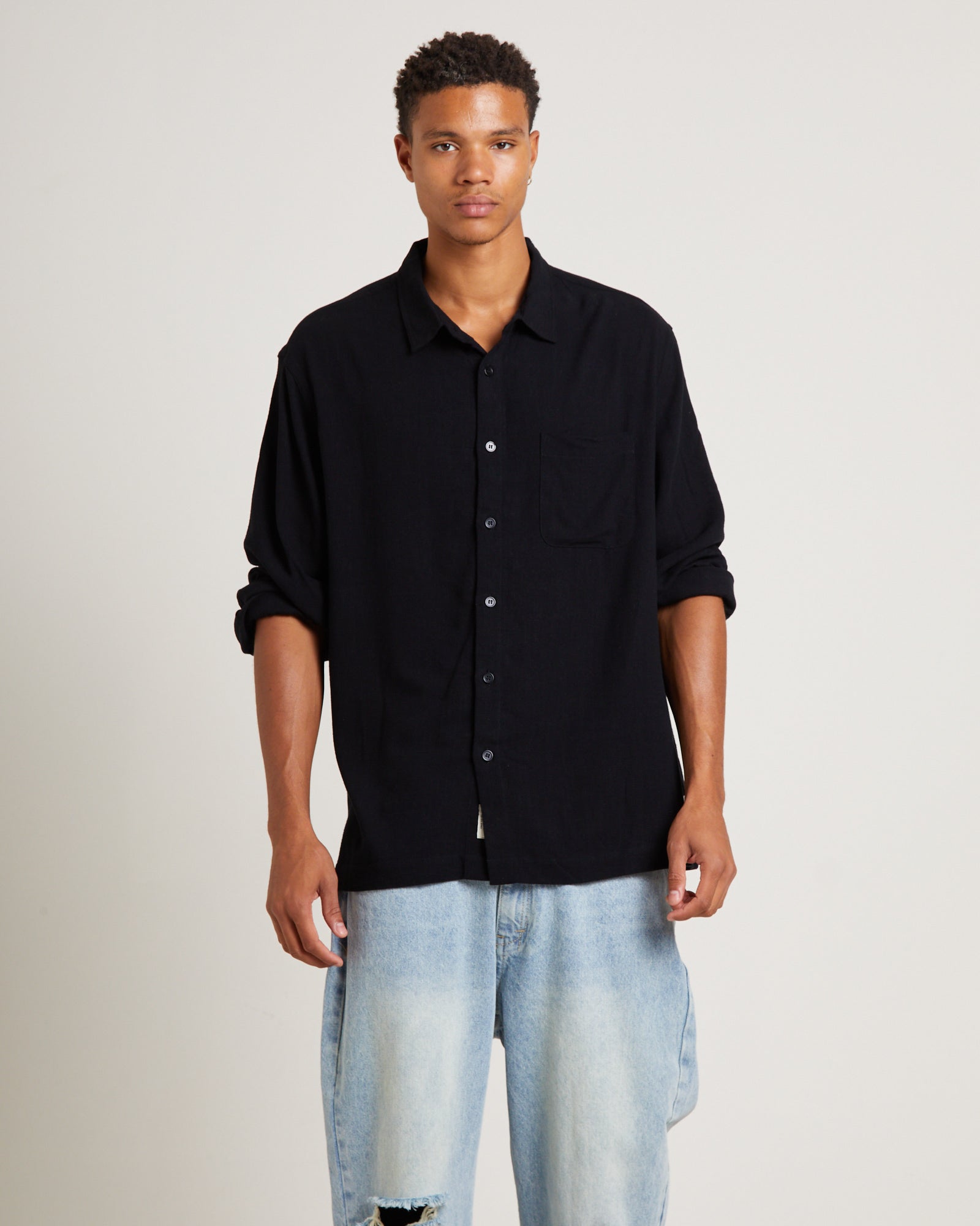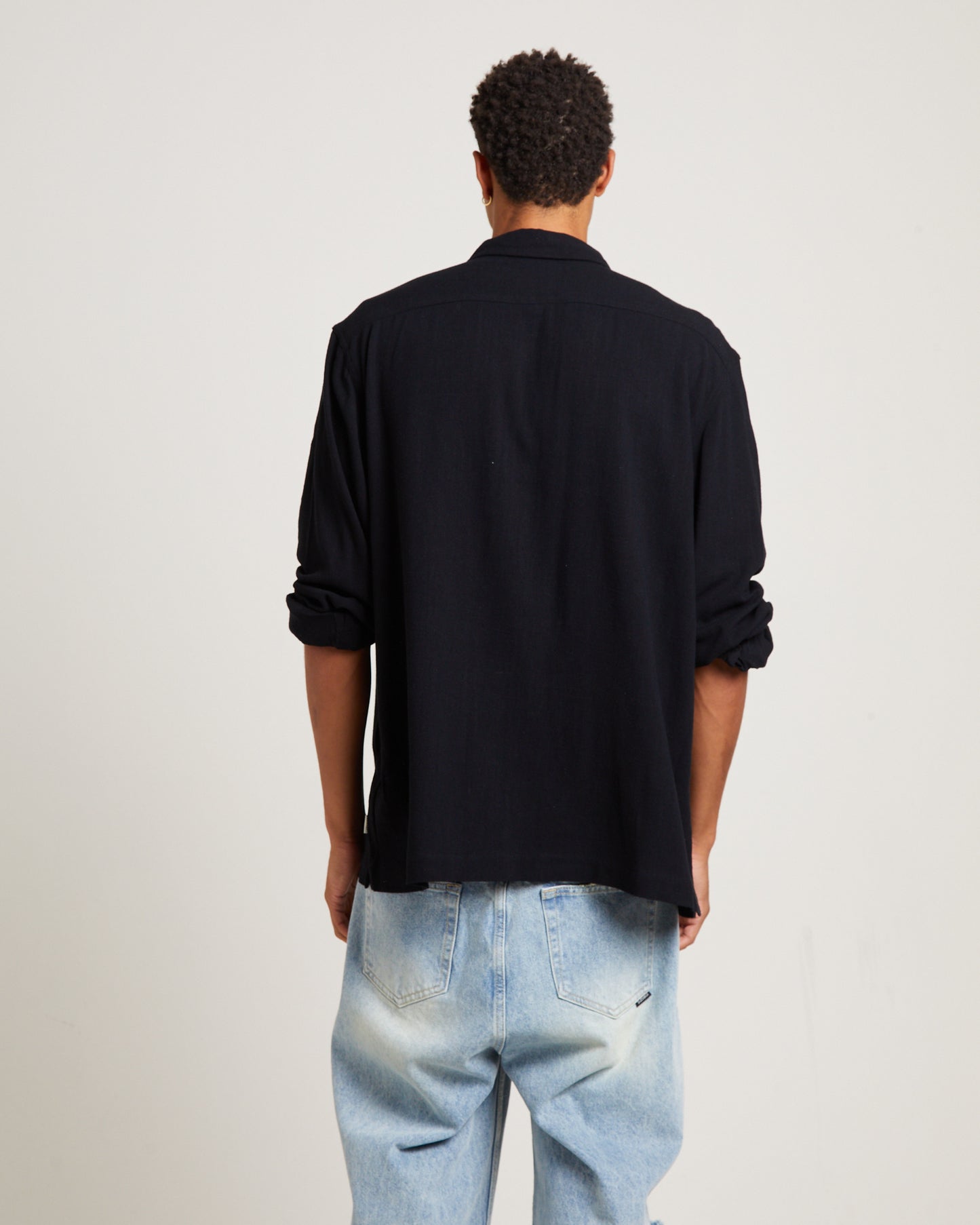 Harrison Linen Long Sleeve Shirt in Black