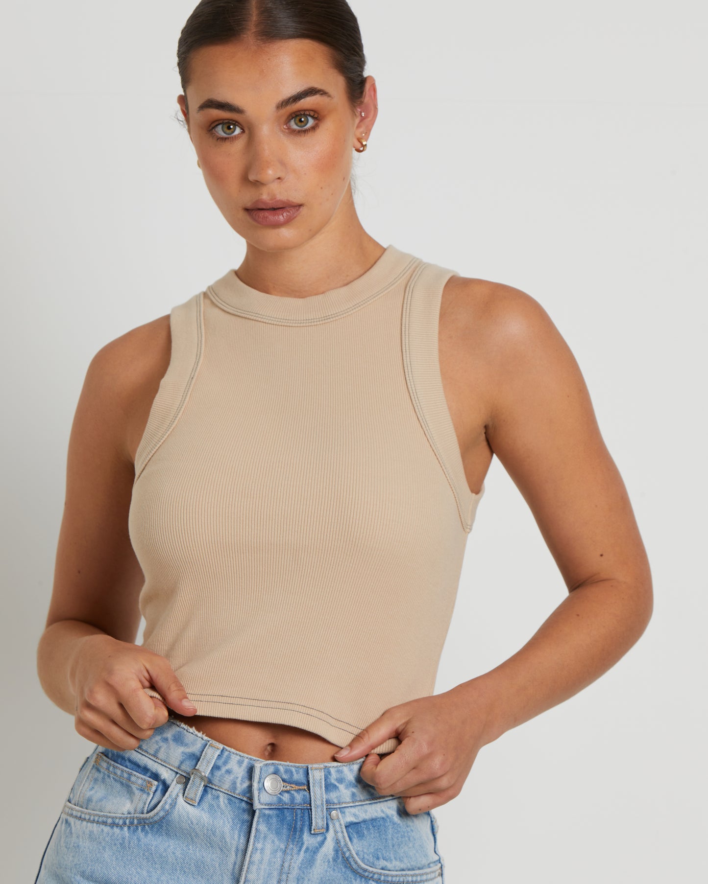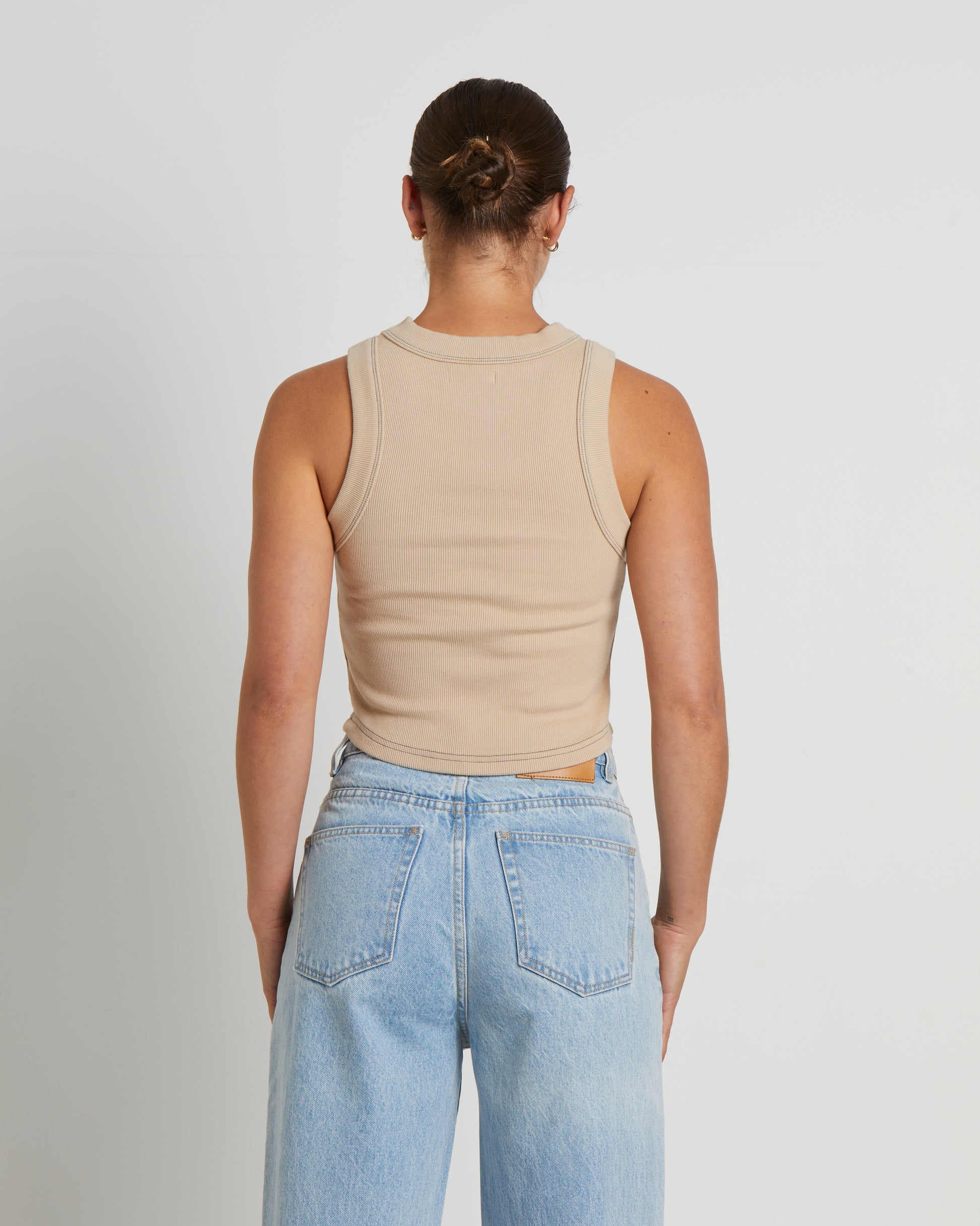 Jonesy Recut Rib Singlet in Bleached Sand
