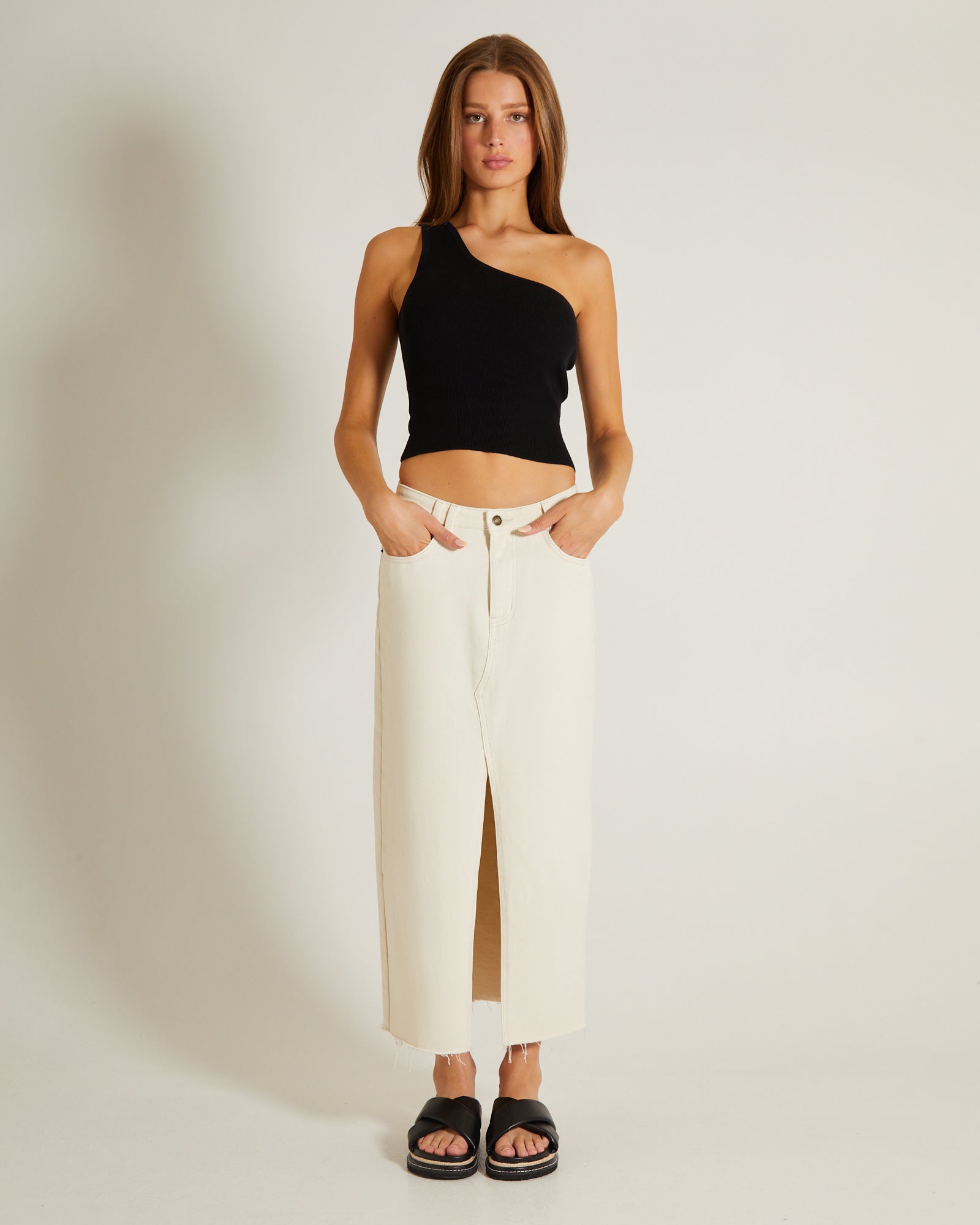 Luxe Knitted One Shoulder Top in Black