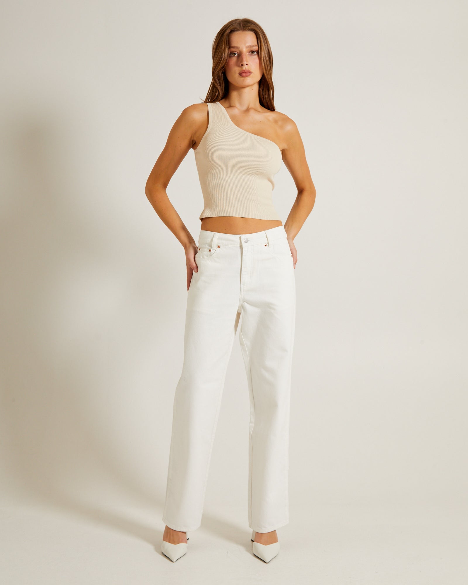 Luxe Knitted One Shoulder Top in Vintage Stone