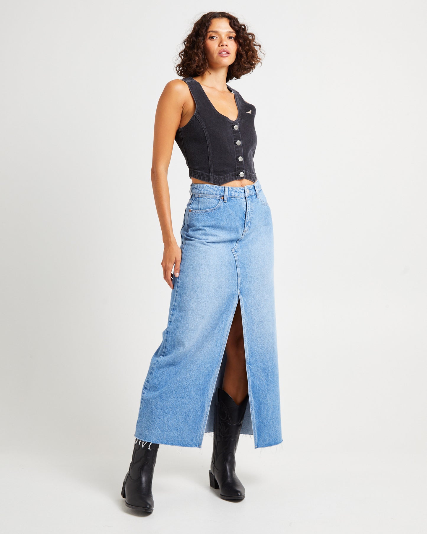 Repair Denim Maxi Skirt in