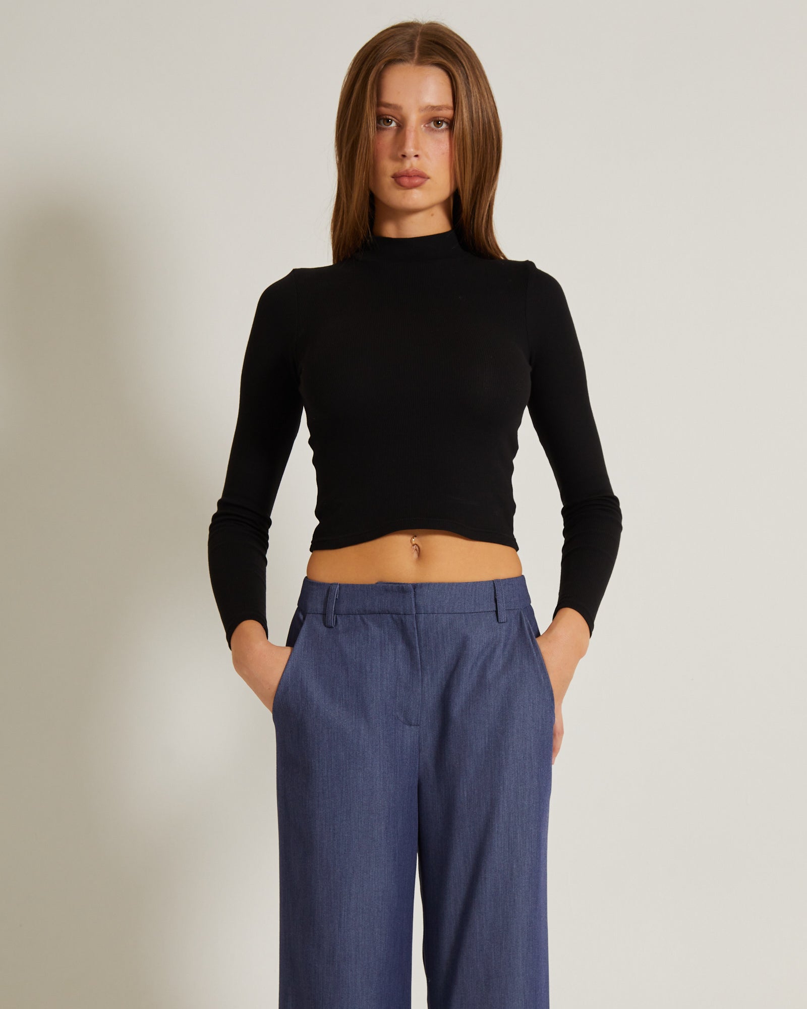 Ribbed Long Sleeve Crop Skivvy