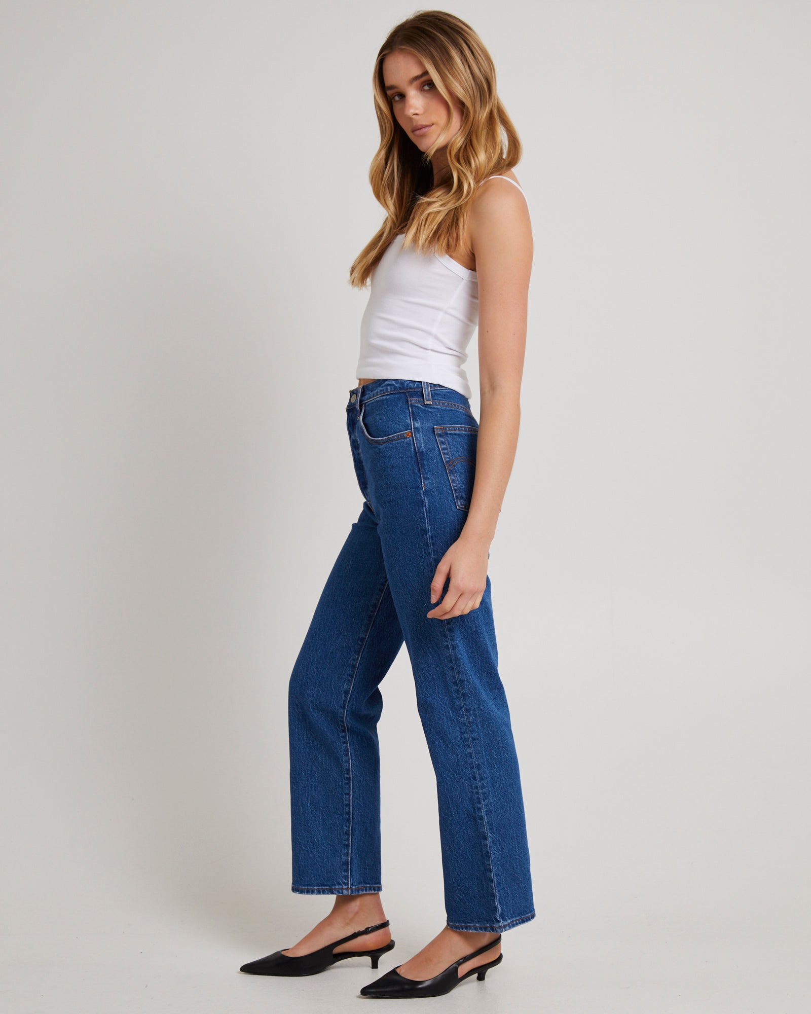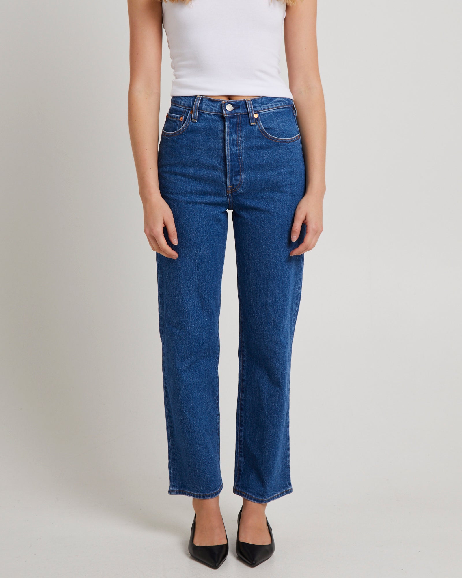 Ribcage Straight Ankle Denim Jeans Jazz Pop