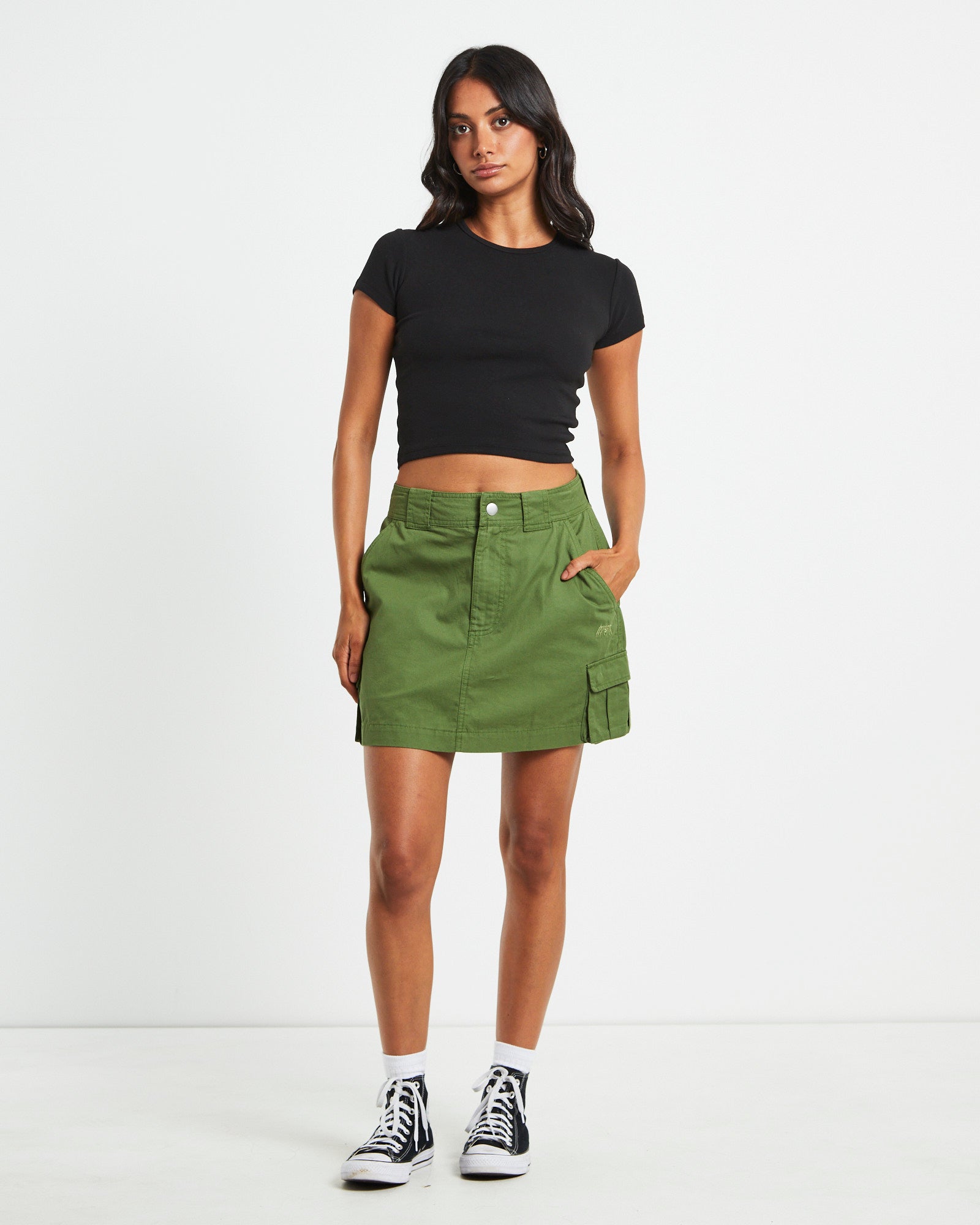 Water Pipe Cargo Mini Skirt in Khaki