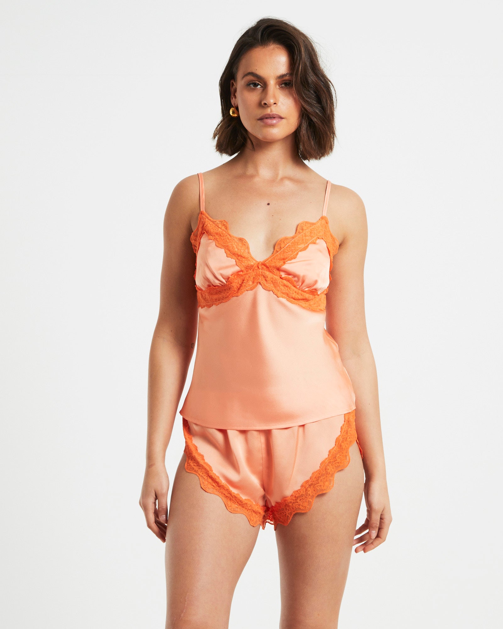 Xia Contrast Lace Trim Cami Top in Peach